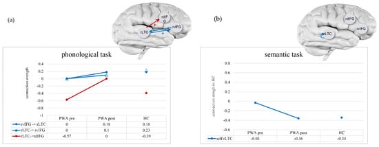 - In the semantic linguistic task, however, we expect bilateral connectivity in HC [,,]. Based on this assumption, in the semantic task, bilateral treatment-related changes in PWA are expected to reflect normalization (i.e., increased resemblance to healthy participants);
