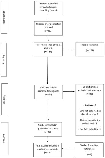 With regard to control participants, most studies recruited age- and education-matched healthy subjects. Seven studies did not match controls according to education [,,,,,,]. Notably, among these studies, we find the one about Alexithymia, which is well known to be associated with sociodemographic variables [].