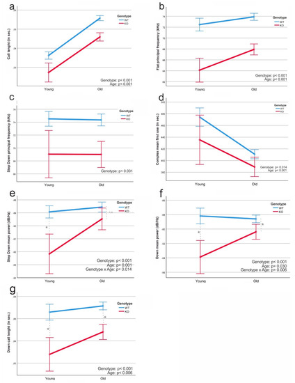 3.3. Genotype- and Age-Dependent Differences in Call Characteristics