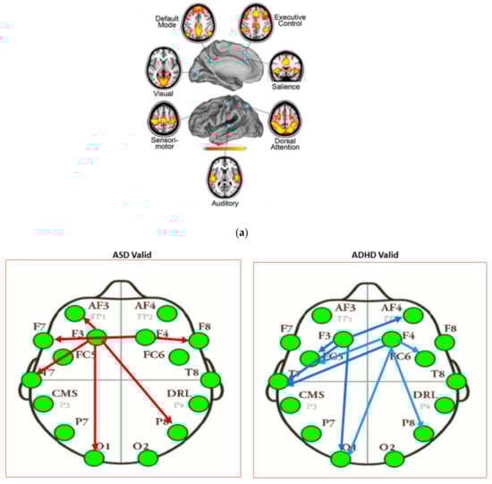 - Lau-Zhu, A.; Fritz, A.; McLoughlin, G. Overlaps and distinctions between attention deficit/hyperactivity disorder and autism spectrum disorder in young adulthood: Systematic review and guiding framework for EEG-imaging research. Neurosci. Biobehav. Rev. 2019, 96, 93–115. [Google Scholar] [CrossRef] [PubMed]