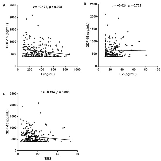 3.2. Correlation between Sex Hormone Levels and GDF-15