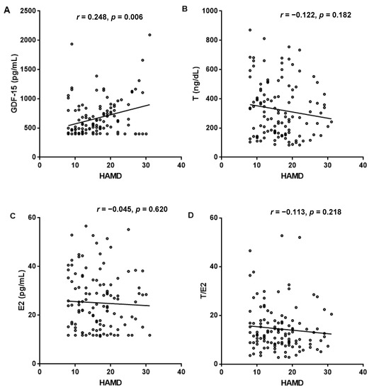 3.3. Association of HAMD-24 Scores with Sex Hormone and GDF-15 Levels