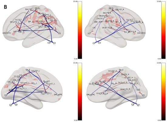 - Seeley, W.W.; Menon, V.; Schatzberg, A.F.; Keller, J.; Glover, G.H.; Kenna, H.; Reiss, A.L.; Greicius, M.D. Dissociable intrinsic connectivity networks for salience processing and executive control. J. Neurosci. 2007, 27, 2349–2356. [Google Scholar] [CrossRef]