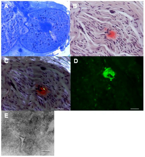 - Vallat, J.M.; Magy, L.; Richard, L.; Piaser, M.; Sindou, P.; Calvo, J.; Ghorab, K.; Cros, D. Intranervous immunoglobulin deposits: An underestimated mechanism of neuropathy. Muscle Nerve 2008, 38, 904–911. [Google Scholar] [CrossRef]