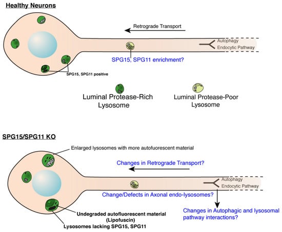 - Varga, R.E.; Khundadze, M.; Damme, M.; Nietzsche, S.; Hoffmann, B.; Stauber, T.; Koch, N.; Hennings, J.C.; Franzka, P.; Huebner, A.K.; et al. In Vivo Evidence for Lysosome Depletion and Impaired Autophagic Clearance in Hereditary Spastic Paraplegia Type SPG11. PLoS Genet. 2015, 11, e1005454. [Google Scholar] [CrossRef]