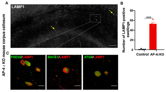 - De Pace, R.; Skirzewski, M.; Damme, M.; Mattera, R.; Mercurio, J.; Foster, A.M.; Cuitino, L.; Jarnik, M.; Hoffmann, V.; Morris, H.D.; et al. Altered distribution of ATG9A and accumulation of axonal aggregates in neurons from a mouse model of AP-4 deficiency syndrome. PLoS Genet. 2018, 14, e1007363. [Google Scholar] [CrossRef]