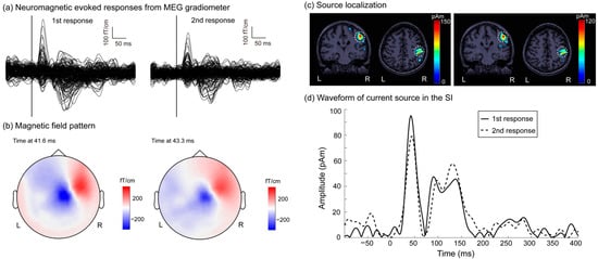 - Hsiao, F.J.; Cheng, C.H.; Chen, W.T.; Lin, Y.Y. Neural correlates of somatosensory paired-pulse suppression: A MEG study using distributed source modeling and dynamic spectral power analysis. NeuroImage 2013, 72, 133–142. [Google Scholar] [CrossRef]