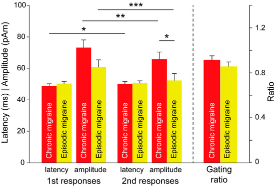 - Hsiao, F.J.; Wang, S.J.; Lin, Y.Y.; Fuh, J.L.; Ko, Y.C.; Wang, P.N.; Chen, W.T. Somatosensory gating is altered and associated with migraine chronification: A magnetoencephalographic study. Cephalalgia 2018, 38, 744–753. [Google Scholar] [CrossRef]