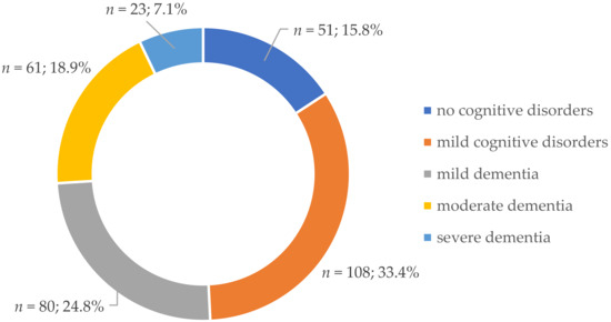 This study evaluated the associations between selected sociodemographic and health-related characteristics and the severity of cognitive impairment based on retrospective data on 323 patients hospitalized in a geriatric clinic of university hospital in Bydgoszcz, Poland. The novelty of this research lays in the fact that not only the presence but also the severity of cognitive disorders was investigated for a possible association with a range of factors.