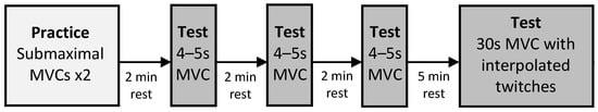 - Shield, A.; Zhou, S. Assessing voluntary muscle activation with the twitch interpolation technique. Sports Med. 2004, 34, 253–267. [Google Scholar] [CrossRef] [PubMed]