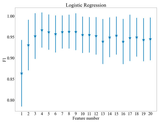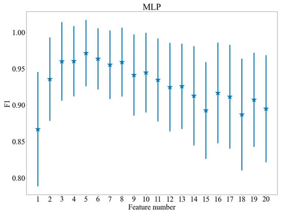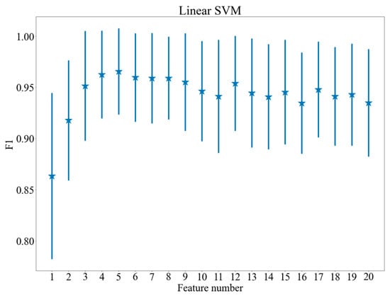 Logistic Regression, chosen in the study as a feature selection tool, is commonly applied as an interpretable machine learning model, as it assigns specific weights to separate features, which allows assessing their importance quantitatively and hence creating a ranking. Logistic Regression was applied for feature selection, as it is commonly used in the cases requiring interpretable machine learning. It allowed improving the result from 0.95 to 0.97 (SVM with linear kernel) using only five features per binary classifier out of 20. Logistic Regression demonstrated a similar result with an even lower feature number (4). MLP also ensured high performance, which required five features. Based on the obtained results, it may be noticed that the most reasonable solution is to use an SVM/logistic regression model in the present problem.