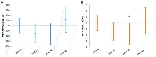 Baseline raw MEP values for absolute MEP amplitude and MEP area are reported in Table 1.