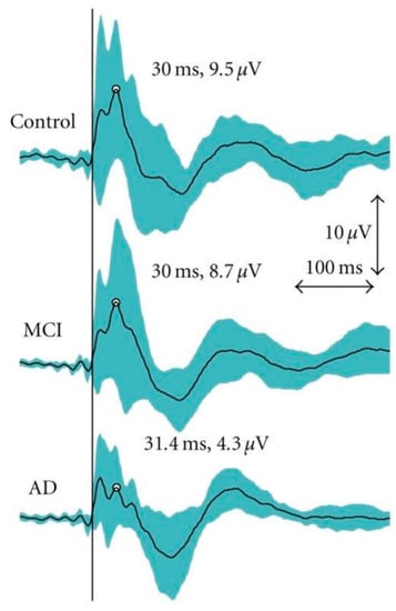- Rossini, P.M.; Rossi, S.; Babiloni, C.; Polich, J. Clinical neurophysiology of aging brain: From normal aging to neurodegeneration. Prog. Neurobiol. 2007, 83, 375–400. [Google Scholar] [CrossRef] [PubMed]