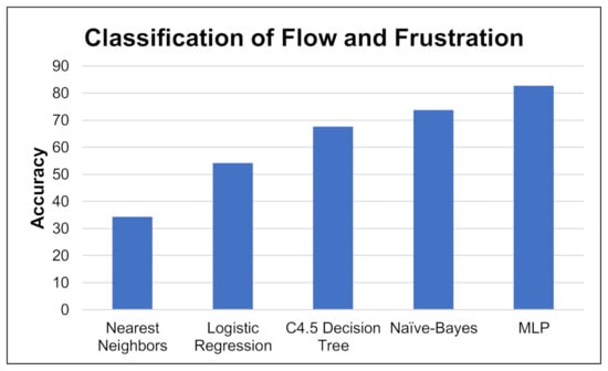 19], was used to evaluate several classifiers in order to classify affects for each emotion from dialogue. Classifiers that were investigated were logistic regression, nearest neighbor, decision tree classifiers, naive Bayes and Multilayer Perceptron (MLP). Applying the classifiers across the emotions with the highest accuracy through pre-processing, ‘Flow’ and ‘Frustration’, we selected the classifier with the highest accuracy, See