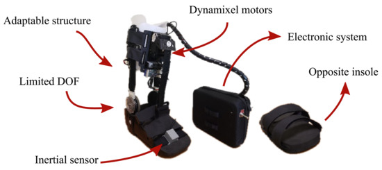 Specifically, people who suffered a stroke can exhibit dysfunctions such as foot drop. This pathology affects the ankle-foot complex’s control, this joint group being fundamental in human gait [4]. Specifically, foot drop is a neuromuscular disorder that impairs the ability of patients to move the foot along the sagittal plane [5,6]. Therefore, people with this condition present limitations such as low walking speed, altered gait pattern, and an increased risk of falling [6,7].