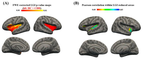 | LGI CDH | LGI HC (p-Value) | Correlation (p-Value) | Main Involved Structures | |