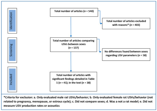 Number of articles reviewed and included in this article regarding sex differences in the rat USV with a PubMed search.