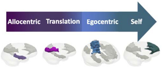 - Peer, M.; Salomon, R.; Goldberg, I.; Blanke, O.; Arzy, S. Brain system for mental orientation in space, time, and person. Proc. Natl. Acad. Sci. USA 2015, 112, 11072–11077. [Google Scholar] [CrossRef] [PubMed]
