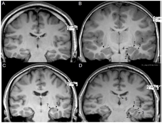- Lehéricy, S.; Dormont, D.; Sémah, F.; Clémenceau, S.; Granat, O.; Marsault, C.; Baulac, M. Developmental abnormalities of the medial temporal lobe in patients with temporal lobe epilepsy. Am. J. Neuroradiol. 1995, 16, 617–626. [Google Scholar] [PubMed]