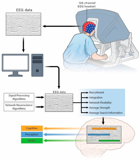 High performance in multifaceted tasks such as surgery depends upon several factors, including the learner’s ability to develop perceptual, cognitive, and motor skills [20]. The human brain is a complex system that includes various subsystems which interact with each other and dynamically change over different temporal scales while interacting with changes in the environment. It has been shown for motor skill acquisition that there are changes of functional connectivity throughout areas of the brain [21,22].