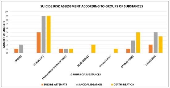 Suicide risk assessment according to the different groups of substances is shown in Figure 2.