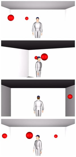 Stimuli of avatar and spherical balls. Each frame presented here demonstrates a different correct response for 1PP and 3PP. Stimuli were adapted from [15,87].
