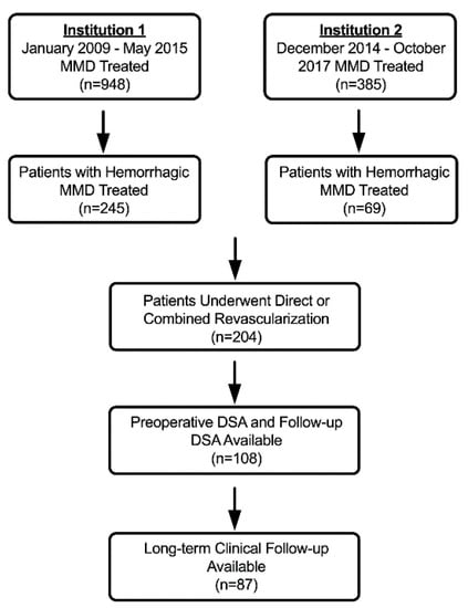 - Funaki, T.; Takahashi, J.C.; Houkin, K.; Kuroda, S.; Takeuchi, S.; Fujimura, M.; Tomata, Y.; Miyamoto, S. Angiographic features of hemorrhagic moyamoya disease with high recurrence risk: A supplementary analysis of the Japan Adult Moyamoya Trial. J. Neurosurg. 2018, 128, 777–784. [Google Scholar] [CrossRef] [PubMed]