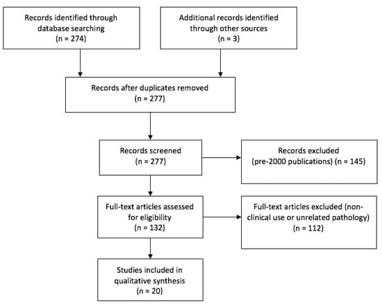 The original query yielded 276 articles. The selection of meaningful papers, as per PRISMA guidelines, is outlined in Figure 3. The clinical experiences retrieved in literature, categorized by fluorophore agent, are reported below.