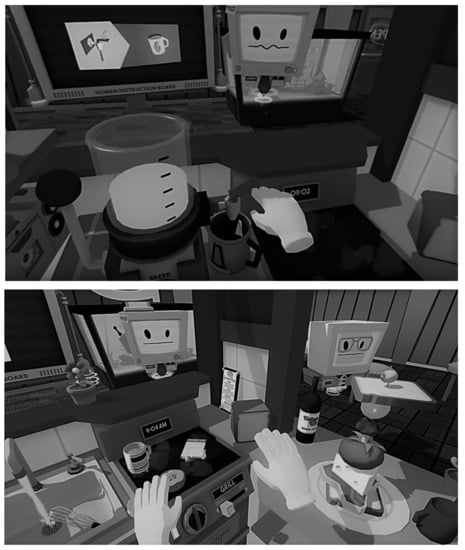 - Schwartz, A. Job Simulator [Computer Software] USA; Owlchemy Labs: Boston, MA, USA, 2016. [Google Scholar]