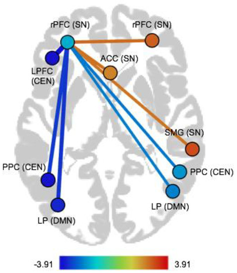 | rPFC (left)–LPFC (left) | neg | −3.91 | 0.003 |