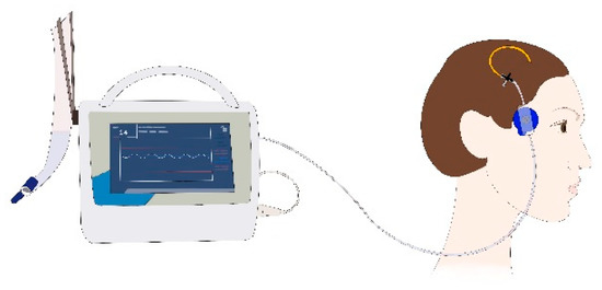 Two LiquoGuard®7 systems (Möller Medical GmbH, Fulda, Germany) were used. The device is an automated pressure-based CSF drainage system connected to the EVD or ELD catheter. It measures ICP by using a pressure sensor that is fixed by an electrocardiogram sticker on the skin over the temporal bone at the height of the foramen of Monro (Figure 1) [9].