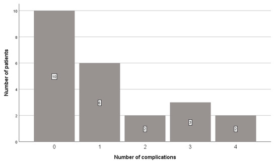 Twenty-eight complications occurred in 14 patients (61%). A total of nine direct complications and 19 indirect complications occurred in these patients, with a median of one (0–4) complication per patient (Figure 2, Table 2).