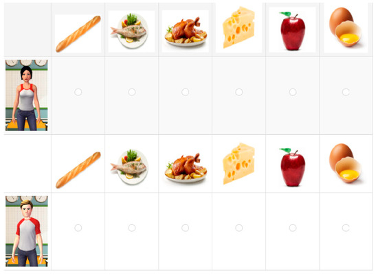 Example of the presentation of a male and a female avatar in the food assignation item.