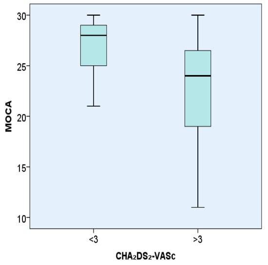 Representation of the MoCA test in hypertensive patients with AF according to the CHA₂DS₂-VASc score </> 3.