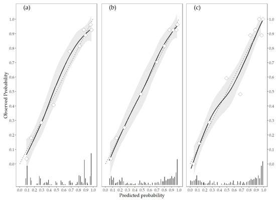 - Austin, P.C.; Steyerberg, E.W. The Integrated Calibration Index (ICI) and related metrics for quantifying the calibration of logistic regression models. Stat. Med. 2019, 38, 4051–4065. [Google Scholar] [CrossRef]