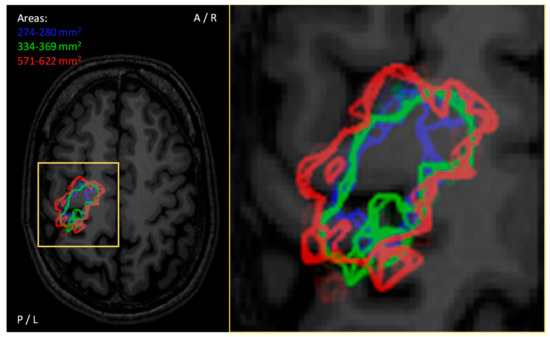 - Molinaro, A.M.; Hervey-Jumper, S.; Morshed, R.A.; Young, J.; Han, S.J.; Chunduru, P.; Zhang, Y.; Phillips, J.J.; Shai, A.; Lafontaine, M.; et al. Association of maximal extent of resection of contrast-enhanced and non-contrast-enhanced tumor with survival within molecular subgroups of patients with newly diagnosed glioblastoma. JAMA Oncol. 2020. [Google Scholar] [CrossRef]
