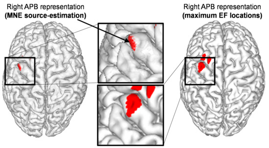 - Pitkanen, M.; Kallioniemi, E.; Julkunen, P.; Nazarova, M.; Nieminen, J.O.; Ilmoniemi, R.J. Minimum-norm estimation of motor representations in navigated TMS mappings. Brain Topogr. 2017, 30, 711–722. [Google Scholar] [CrossRef] [PubMed]