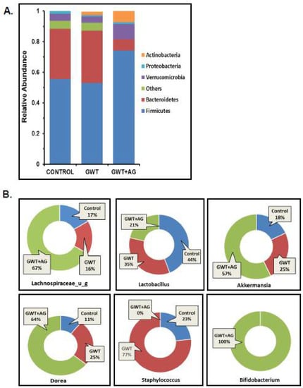 3.1. Andrographolide Treatment Restores GW Chemical-Associated Bacteriome Alteration in Mice