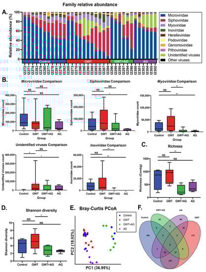 3.2. Virome Alteration Associated with Andrographolide Administration in a Mouse Model of GWI