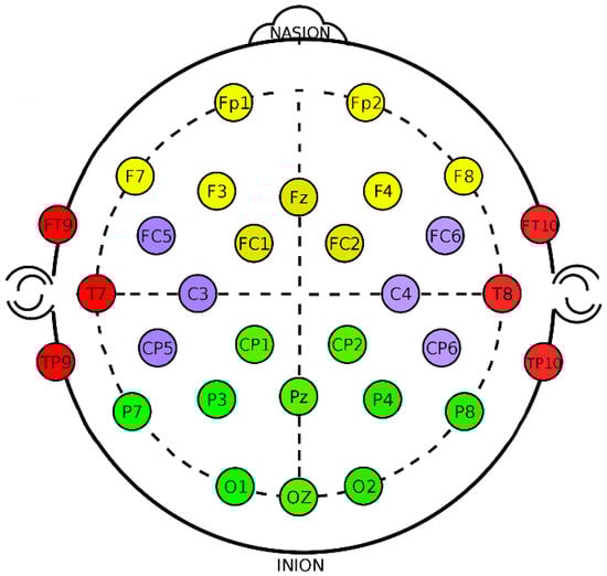 - Delorme, A.; Makeig, S. EEGLAB: An Open Source Toolbox for Analysis of Single-Trial EEG Dynamics Including Independent Component Analysis. J. Neurosci. Methods 2004, 134, 9–21. [Google Scholar] [CrossRef] [Green Version]