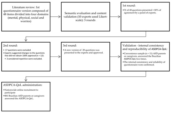 Pratesi, C.B.; Garcia, A.B.; Pratesi, R.; Gandolfi, L.; Hecht, M.; Nakano, E.Y.; Zandonadi, R.P. Quality of Life in Caregivers of Children and Adolescents with Autistic Spectrum Disorder: Development and Validation of the Questionnaire. Brain Sci. 2021, 11, 924. https://doi.org/10.3390/brainsci11070924