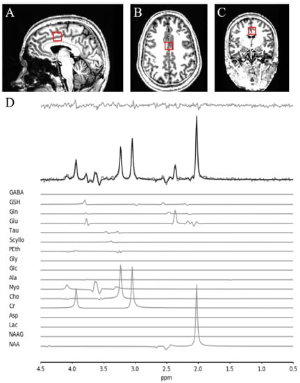 - Wang, A.M.; Pradhan, S.; Coughlin, J.M.; Trivedi, A.; DuBois, S.L.; Crawford, J.L.; Sedlak, T.W.; Nucifora, F.C.; Nestadt, G.; Nucifora, L.G.; et al. Assessing Brain Metabolism With 7-T Proton Magnetic Resonance Spectroscopy in Patients With First-Episode Psychosis. JAMA Psychiatry 2019, 76, 314. [Google Scholar] [CrossRef] [PubMed]