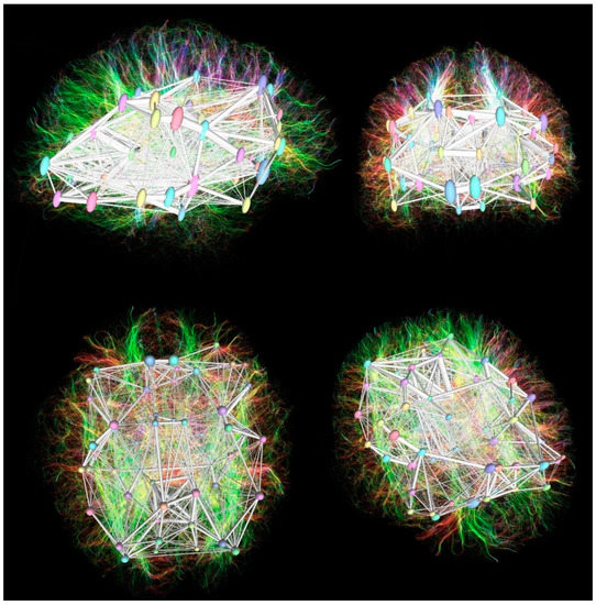 - Yeh, F.-C.; Panesar, S.; Fernandes, D.; Meola, A.; Yoshino, M.; Fernandez-Miranda, J.C.; Vettel, J.M.; Verstynen, T. Population-Averaged Atlas of the Macroscale Human Structural Connectome and Its Network Topology. Neuroimage 2018, 178, 57–68. [Google Scholar] [CrossRef] [PubMed]
