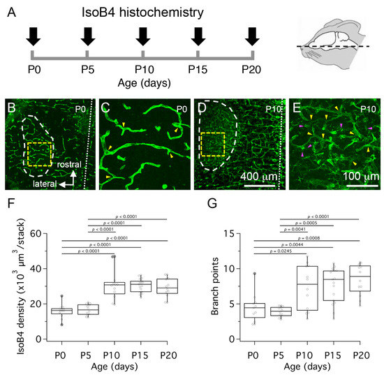 - Whiteus, C.; Freitas, C.; Grutzendler, J. Perturbed neural activity disrupts cerebral angiogenesis during a postnatal critical period. Nature 2014, 505, 407–411. [Google Scholar] [CrossRef] [PubMed]