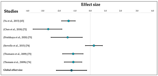 Then, we calculated a combined effect size when the number of studies was appropriate (≥5) [67]. We followed recent guidelines for interpreting combined effect sizes as small (g ≥ 0.16), medium (g ≥ 0.38) and, large (g ≥ 0.76) in geriatric populations [68]. We used the more conservative random effects model to compute the significance level of the mean effect sizes for each study.