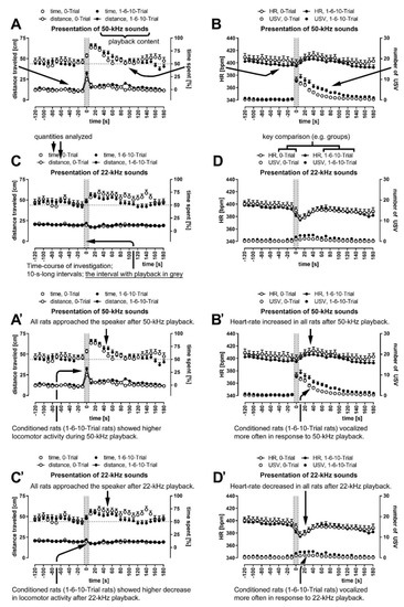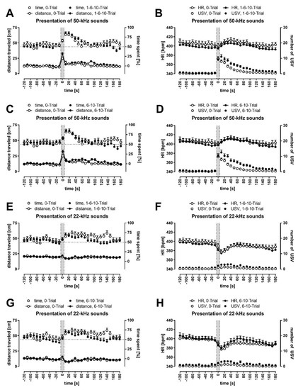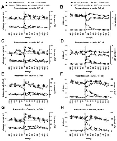 3.9. One-Trial Rats Showed Lower HR Levels and a Smaller Response to 50-kHz Playback