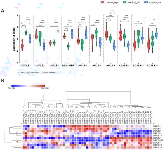 Expression Levels of the Galectin Gene Family Members in Different Brain Regions from Control Donors