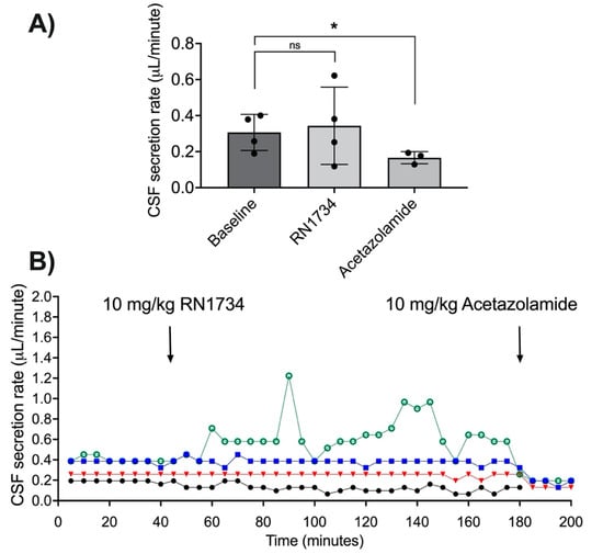 - Uldall, M.; Botfield, H.; Jansen-Olesen, I.; Sinclair, A.; Jensen, R. Acetazolamide lowers intracranial pressure and modulates the cerebrospinal fluid secretion pathway in healthy rats. Neurosci. Lett. 2017, 645, 33–39. [Google Scholar] [CrossRef] [Green Version]