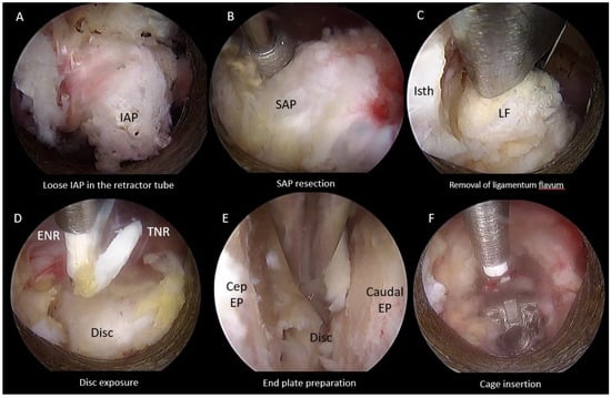 - Wagner, R.; Haefner, M. Uniportal Endoscopic Lumbar Interbody Fusion. Neurospine 2020, 17, S120–S128. [Google Scholar] [CrossRef]