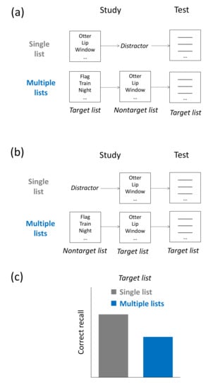 35. Osgood, C.E. An investigation into the causes of retroactive interference. J. Exp. Psychol. 1948, 38, 132–154. [Google Scholar] [CrossRef]